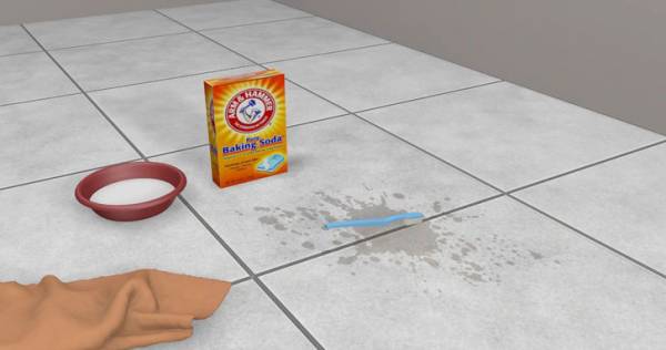 Уксусная эссенция поможет отмыть трудновыводимые пятна на керамической плитке и кафеле. Она глубоко проникает и не вредит материалу плитки. После такой обработки нужно тщательно помыть все поверхности раствором пищевой соды. Такая комплексная обработка имеет очень большую эффективность, так как сода, соединяясь с уксусной кислотой, вызывает выделение газа, который может вытолкнуть из пор частицы несвязанного пигмента.