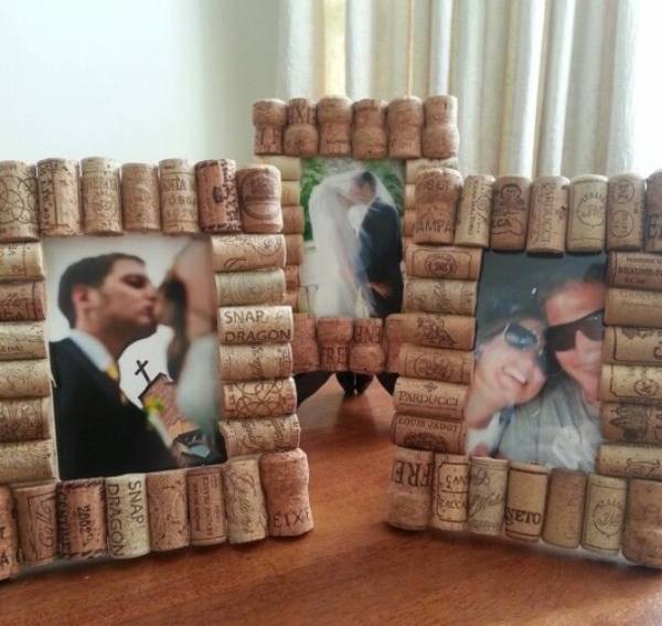 Оригинальным подарком будет сделанная из пробок фоторамка. Существует много семейных праздников и памятных дней, когда этот подарок уместен.
