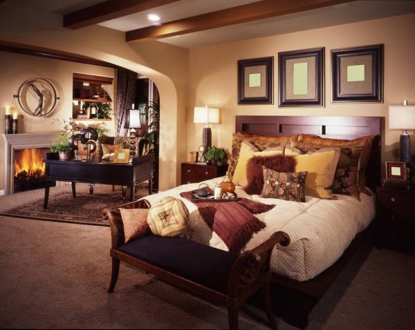 Спальня в стиле Средиземноморья выглядит как комната для полного умиротворения и нацелена лишь на отдых. Поэтому она может содержать в себе элементы гостиной, например, камин, диван, кресла и прочую фурнитуру.