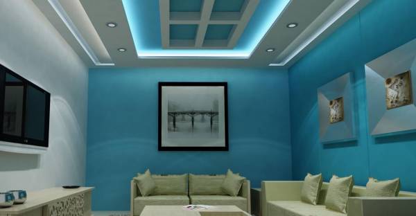 При желании можно сделать в комнате оригинальные многоуровневые конструкции, дополнив их внутренней светодиодной подсветкой.