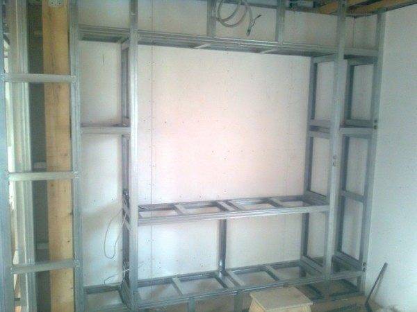 Установка ниши из гипсокартона под подсветку начинается со сборки каркаса из металлических профилей. Алгоритм монтажа следующий: