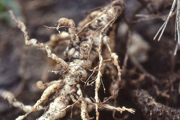 Личинки насекомого проникают глубоко в корень, на котором в результате появляются галлы (шарики) величиной около трех миллиметров. Внутри этих образований находятся маленькие червячки. Проникая в землю, они поражают другие растения.