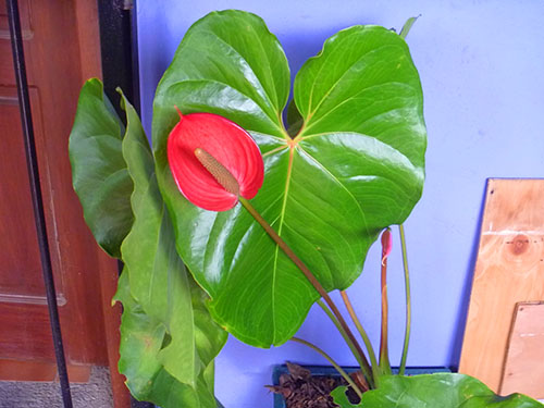 Если растение приостановило рост, мало и неохотно цветет, вероятно, ему не хватает света. Особенно сильно от этого страдают антуриумы с плотными темно-зелеными листовыми пластинками. В условиях короткого светового дня или, находясь постоянно в тени, черенки у листьев антуриума удлиняются, листовые пластины мельчают и заметно бледнеют. Переставив растение на хорошо освещенный подоконник, можно заметить, как оно обретает былую красоту, развитие желтизны и пятен на листьях антуриума прекращается.