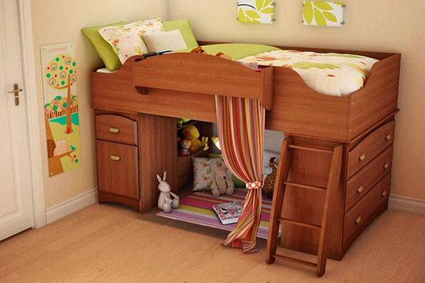 Во многих мебельных магазинах часто встречается кровать с игровой зоной наверху или внизу. Данные модели будут прекрасно вписываться в небольшую детскую комнату, при этом они сделают ее более функциональной и стильной. А оборудованные варианты для мальчиков и девочек с игровыми или спортивными зонами окажут положительное влияние на развитие ребенка.