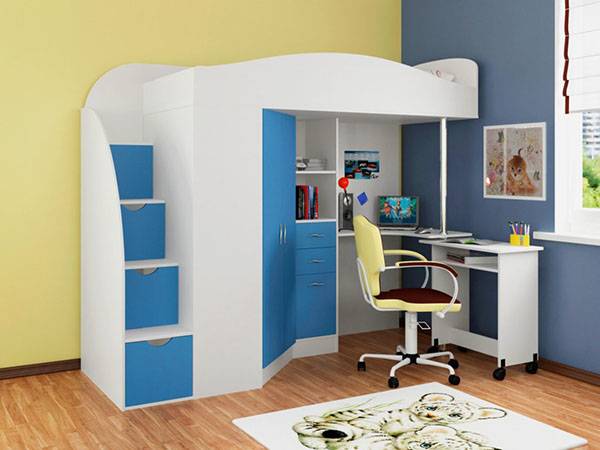 Кровать чердак с рабочей зоной будет прекрасным вариантом для школьника и подростка. Данное изделие обычно имеет два яруса – на верхнем ярусе располагается удобное спальное место, а на нижнем различные приспособления для учебы и работы – компьютерный стол, ящики и стеллажи для книг, тумбочки и шкафы. Обязательно должен присутствовать комфортабельный стул, который не будет вызвать дискомфорта.