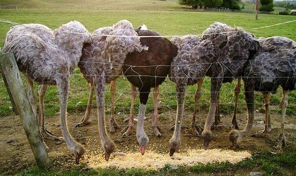 Разумеется, особым птицам требуется особое питание. Однообразное кормление страусов изо дня в день не подойдет, если в планах есть выращивание здорового и крепкого поголовья. Хотя сам процесс кормления не отличается уникальными приемами.