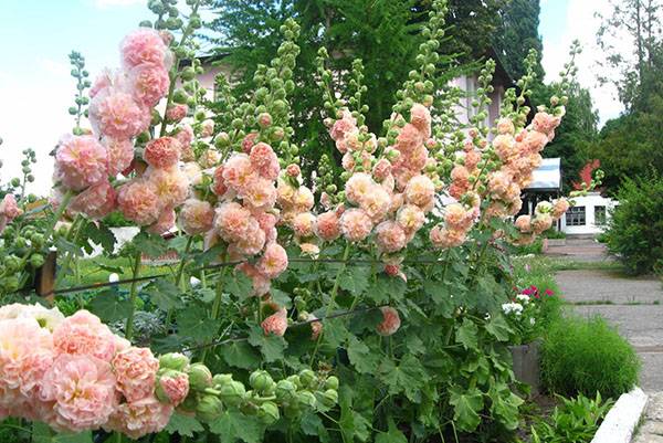 Легко переносящая засуху, с роскошной декоративной зеленью и кистевидными соцветиями шток-роза может по праву считаться королевой дачного участка. Растения высотой до 2 метров – одни из самых крупных в российских садах. Они возвышаются над остальными цветами и даже плодовыми кустарниками.