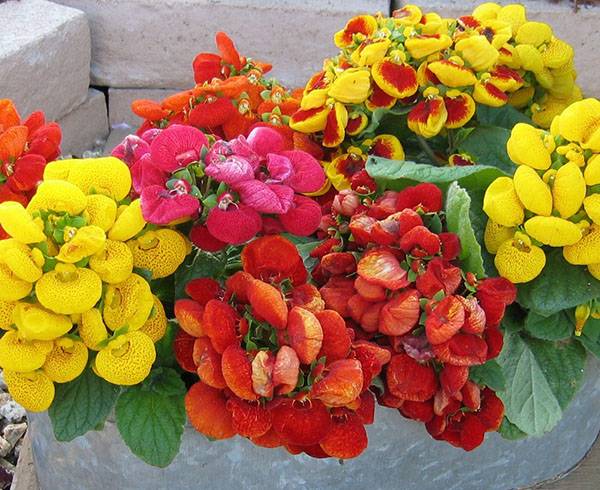 В домашних условиях это растение выращивают как двулетник и обязательно укорачивают крону, когда заканчивается массовое цветение. Чтобы цветы, изображенных на фото, самых красивых комнатных растений с названием кальцеолярия дольше оставались яркими и свежими, горшки ставят подальше от прямых солнечных лучей, а грунт регулярно увлажняют.