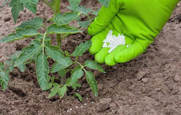 Для того чтобы помидоры давали хороший урожай надо удобрять их два раза в сезон. Проведение первой процедуры нужно планировать через 20 дней после высадки рассады в открытый грунт. Вторая подкормка должна проводиться через месяц после первой. Именно на это время припадает плодообразование. Удобрять кустики следует только жидкими смесями. Для этого в ведро воды положить 15 грамм калийного удобрения, 25 грамм азотной смеси и около 40 грамм препаратов с максимальным процентом фосфора. Полученную смесь следует равномерно распределить на 15 кустиках. Вторая подкормка должно проводиться в соотношении 10 л на каждые 7 кустиков. Для того чтобы предотвратить появление вершинной гнили, раз в 7 дней следует опрыскивать растения кальциевой селитрой. Начинать проводить такую процедуру нужно в период роста плодов. Также рекомендуется периодически удобрять помидоры между рядами. Для этого используют смесь из фосфорных и азотных препаратов.