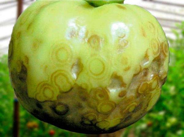 Если гриб поразил плоды, то они покрываются вдавленными плоскими пятнами.