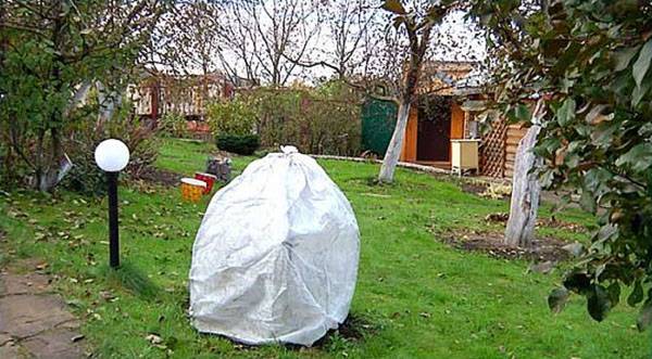 Ветви кустов, которые уже несколько лет растут на участке, не настолько гибки, но все же требуют укрытия. Их понадобится стянуть и укрыть воздухонепроницаемым материалом, который поможет сохранить почки до весны в хорошем состоянии и перенести морозы до 30 градусов.