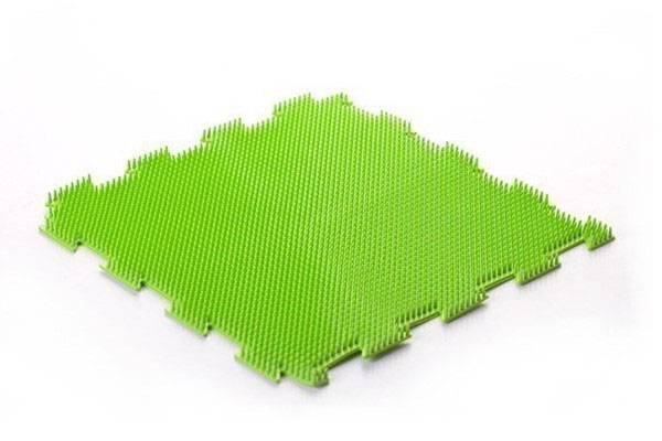 Один модуль мягкого покрытия представляет собой гибкую плитку с небольшим весом и резным краем, как у пазла. Сцепляясь между собой, элементы образуют единое, ровное полотно. Такая особенность позволяет приобрести коврик желаемого размера, независимо от площади комнаты, застелив им весь или выбранный участок.