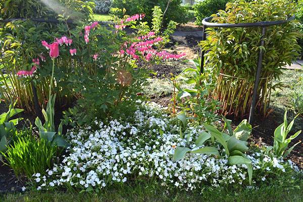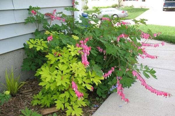 Если вы хотите сделать свой цветник особенным, тогда поселите возле своего дома этот трогательный цветок, напоминающий разбитое сердце с вытекающей из него слезинкой. Фото дицентры в ландшафтном дизайне: