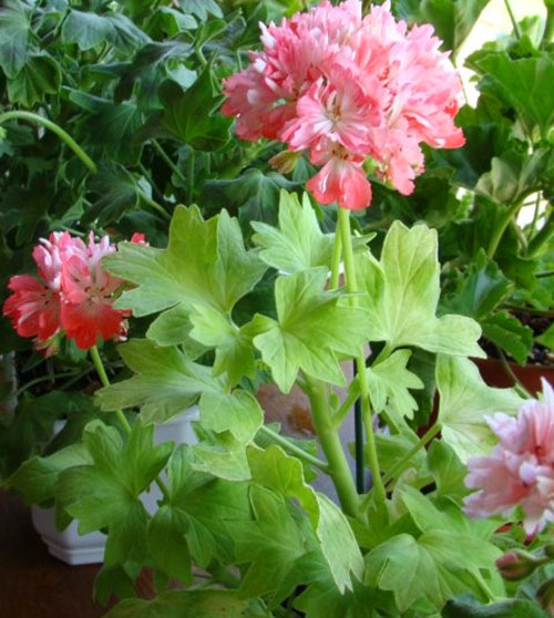 Как истинная миниатюра, пеларгония Rushmoor Golden Ruffles растет очень медленно, охотно дает боковые побеги и обильно цветет.