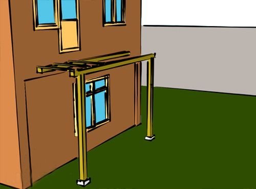 Как вариант, можно использовать куски бетонной трубы, они будут служить опалубкой и укрепят конструкцию. На дно ямы насыпается песчаная подушка, после чего заливаются сами опоры, они должны быть выше уровня земли, но делать их слишком высокими не стоит;