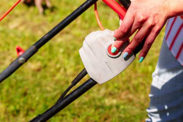 Еще одна интересная функция, которая есть у всех электрических моделей — быстрый запуск косилки нажатием кнопки. Сейчас этим садовода не удивишь, а некоторое время назад она встречалась не всегда, поэтому упомянем ее ради исторической справедливости. Бензиновые же газонокосилки до сих пор не всегда могут порадовать быстрым запуском — у них приходится по старинке дергать за пусковой трос.