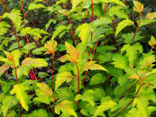 Но помните, что и пурпурные, и желтые листья даже при легком затенении меняют цвет на обычный, зеленый. Им нужно открытое солнце. Поэтому если вы пожелаете прикрыть некрасивые «внутренности» металлического забора, старайтесь высаживать пузыреплодники с южной стороны. Расстояние между кустами должно быть не меньше 2 м, чтобы взрослые растения не теснились и не угнетали друг друга.