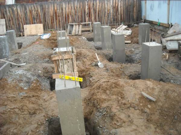 Для первичных работ необходимо приобрести сваи ТИСЭ, которые славятся своей прочностью за счет нижнего расширения. Бурить под них скважины можно как вручную, так и с помощью специальных инструментов. Как соорудить опалубку? Необходимо свернуть в трубы в три слоя рубероид и закрепить при помощи скотча. Или же можно воспользоваться трубами ПВХ. Внутрь каждой сваи следует установить три или четыре прута арматуры, соединенных воедино в форме квадрата либо треугольника. Какой длины должны быть прутья? Над поверхностью каждой сваи должно возвышаться не менее 0,75 метра арматуры.