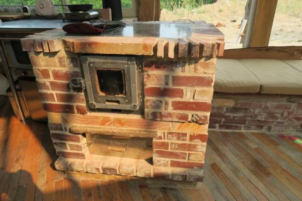 Топку маленькой печи, конечно же, следует выкладывать прежде всего из жаропрочного материала. Дрова имеют довольно-таки высокую температуру горения. Выкладывают топки печей в большинстве случаев из шамотного кирпича. Точно такой же материал используют обычно и для возведения нижней части дымохода. Ведь газы, образующиеся при сгорании дров и угля, также имеют довольно-таки высокую температуру. Верхнюю часть дымохода мини-печей, как и больших, допускается выкладывать из обычного полнотелого кирпича.