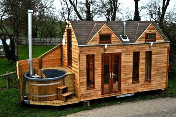 Такого типа небольшие дома-бани очень удобны и неприхотливы. Возвести такое строение на своем дачном участке окажется очень просто, так как не нужно к ней подводить коммуникации. А самое главное – не потребуется наличие прочного и надежного фундамента. Суммарная масса всей постройки не более полутонны. Но в ней есть все, что нужно – душ, парная, предбанник, моечная. Другими словами, именно то, что необходимо для полноценного парения.