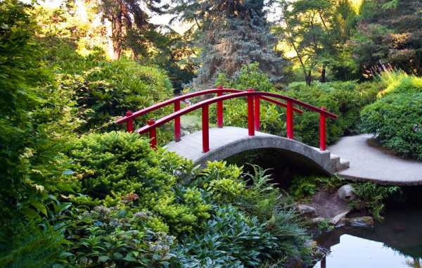 Мосты обязательно должны выделяться на общем фоне, поэтому их окрашивают в яркие цвета и украшают традиционной символикой. В нашем случае совсем не обязательно делать мост как переправу через ручей или водоем, вполне можно ограничиться чисто декоративным вариантом с ведущими к нему дорожками и небольшими клумбами по краям.