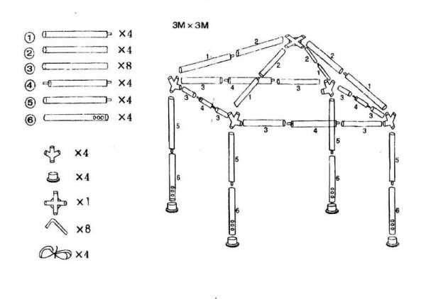 Простой прямоугольный или многоугольный шатёр можно собрать из металлических или полипропиленовых труб.
