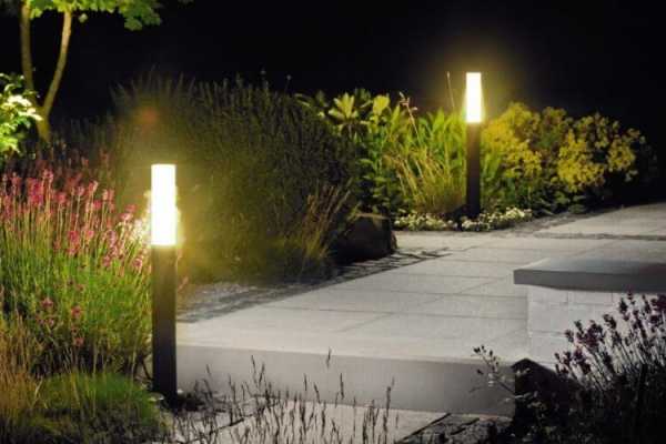 Невысокие устройства на стойке отлично подходят для разделения фрагментов газонов и клумб. С их помощью можно подчеркнуть границы лужаек и подсветить садовые дорожки. Высокие светильники хорошо расставляют декоративные акценты и способны освещать достаточно большие пространства. В сочетании с декоративными приборами получаются очень интересные композиции.