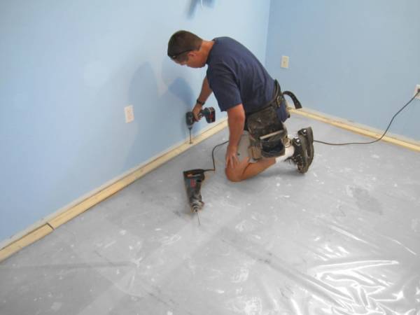 монтируются доски чистового пола;