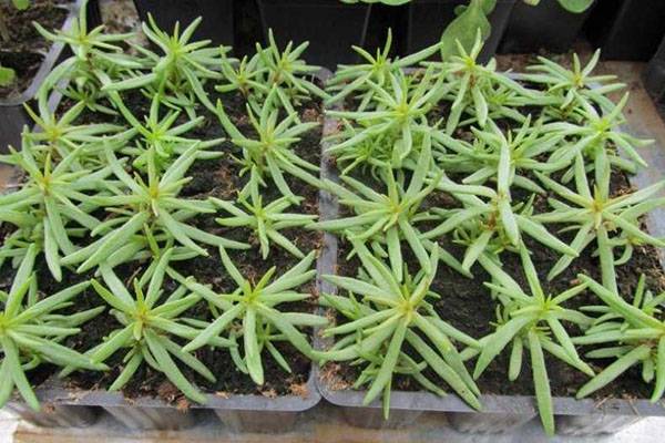 Посадку и уход за портулаком в открытом грунте выполняют поэтапно. Сначала проводят процедуру закалывания ростков. Для этого их выносят из помещения на несколько минут в течение 14 дней. С каждым разом увеличивают время закалывания портулака на улице.