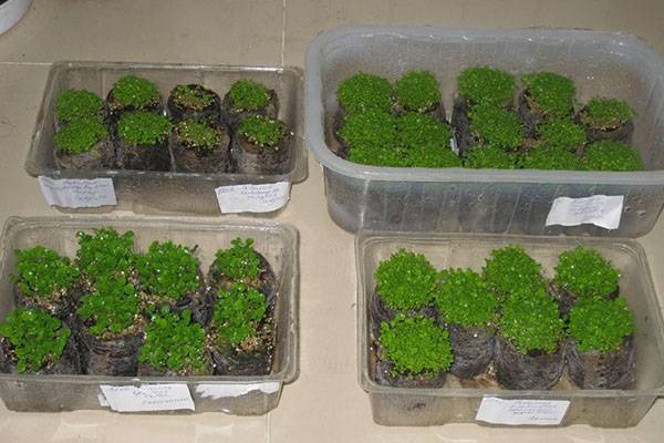 В одну емкость следует высаживать несколько саженцев, так как по одному их отделить практически нереально. При любой попытке это сделать, возникает большая опасность навредить растению. В почве сделайте маленькое углубление, положите в него саженцы, слегка придавите грунтом и полейте. Осталось запастись терпением, и ждать пока рассада немного подрастет.