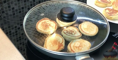 Жарить оладьи нужно, разогрев сковороду и прикрутив огонь до минимума, иначе они останутся сырыми внутри. Когда одна сторона подрумянится, а вторая слегка схватится, их надо перевернуть. Затем накрыть сковороду крышкой и дожаривать так. Тогда оладушки хорошо пропарятся и не осядут.