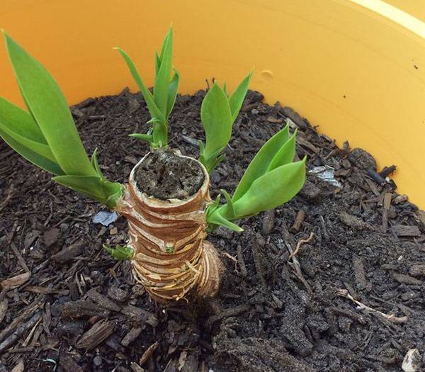 В тепле на стволике юкки уже скоро станут заметны спавшие до этого почки. Когда из них разовьются новые розетки листьев, растение переносят на свет и начинают обычный уход за юккой в домашних условиях.