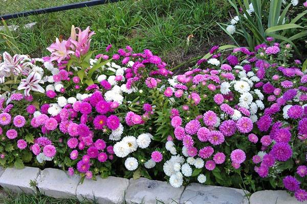 В композициях с другими растениями чаще всего используют астры средней высоты.