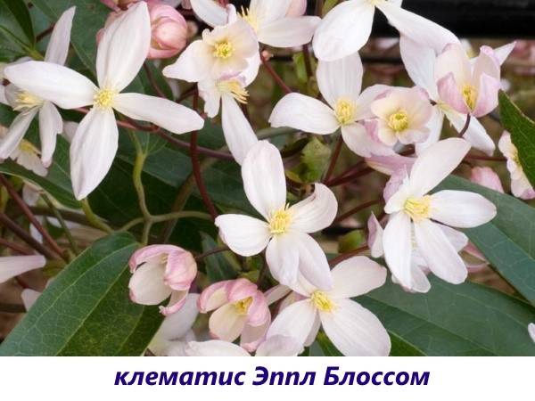 Садоводы, готовые к возможным трудностям в уходе за клематисами Арманда, чаще всего выращивают сорта Эппл Блоссом и Сноудрифт.