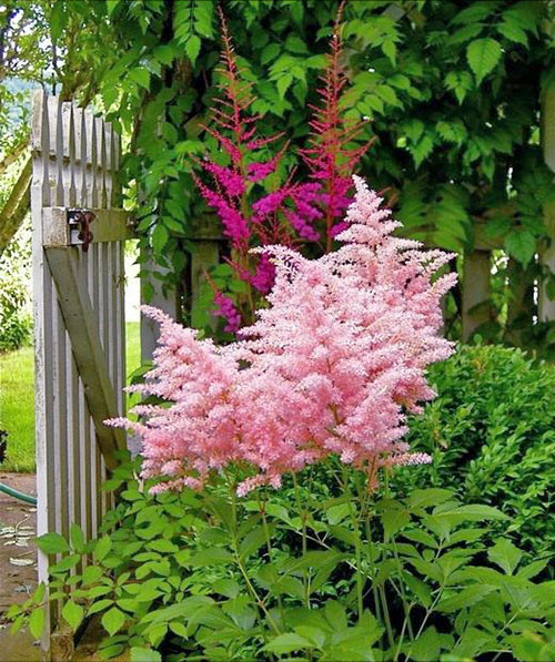 В зависимости от сорта и вида высота растений колеблется от 40 до 120 см. Астильбы лучше цветут при регулярном увлажнении грунта, но не любят застоя влаги. В садовых посадках эти красивые и неприхотливые цветы для дачи великолепно выглядят на фоне хвойных пород, и сами будет роскошной рамой для низкорослых растений.