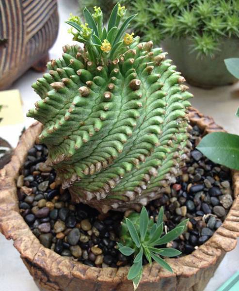 Постепенно изображенное название редкого комнатного растения, на фото, становится все известнее и среди знатоков суккулентов, и среди рядовых цветоводов. Сегодня в их распоряжении появились еще более удивительные, чем молочай тучный, его межвидовые гибриды, а также различные формы.