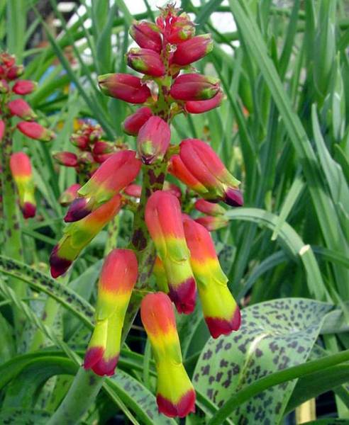 Влаголюбивое, пригодное для выгонки оригинальное растение отлично растет на хорошо освещенных местах, любит прохладу и уже при температуре 8–12 °C начинает развиваться и выбрасывает цветонос с кистью трубчатых цветков, окрашенных в желтые, зеленоватые, оранжевые и пурпурные тона.