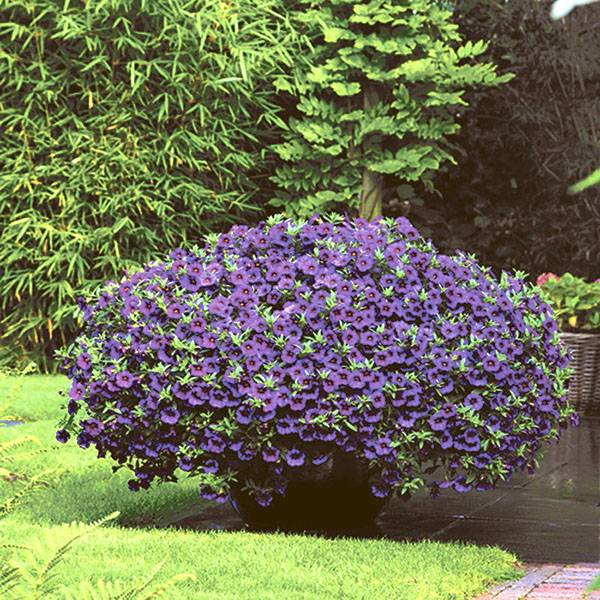 Кроме украшения грядок, веранд и балконов калибрахоа широко применяется в ландшафтном дизайне. Причем речь идет не только об ампельных видах, но и о низкорослых сортах. Комбинации могут быть самые разнообразные – от высаживания цветка на возвышенностях вместе с горными растениями до наполнения уличных ваз.