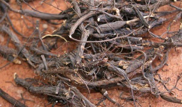 - толстый и деревянистый корень темно-бурого оттенка достигает 80 см (срез – светлый);