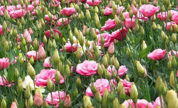 При детальном рассмотрении фото цветов лизиантуса можно заметить, что сорта в основном отличаются расцветкой. Лишь некоторые разновидности удивляют своими махровыми крупными бутонами. Цветет культура на протяжении 3 летних месяцев. Шикарный вид ей придают: